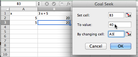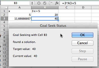 We can obviously use all the algebraic techniques we developed in previous courses to solve our problem symbolically. However, Excel gives us two tools to use to solve problems numerically, Goal Seek and Solver. In this section we will explore Goal Seek, the simpler of these tools.