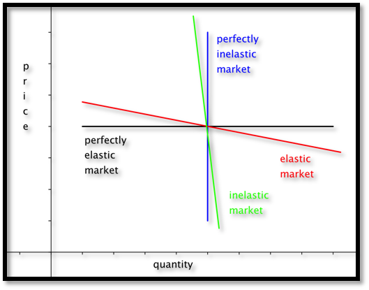 We previously noted that a linear demand price function has a negative slope. We should note the two limiting cases. If the slope of the demand curve is 0, the consumers have a fixed price they will pay for however much of the product is available. In this case the demand curve is a constant, so the revenue curve will be linear. This is referred to as a perfectly elastic market. The other limiting case is where the demand is for a fixed amount no matter what the price. In this case the demand curve is a vertical line and is not a function, so the revenue curve also fails to be a function of quantity.