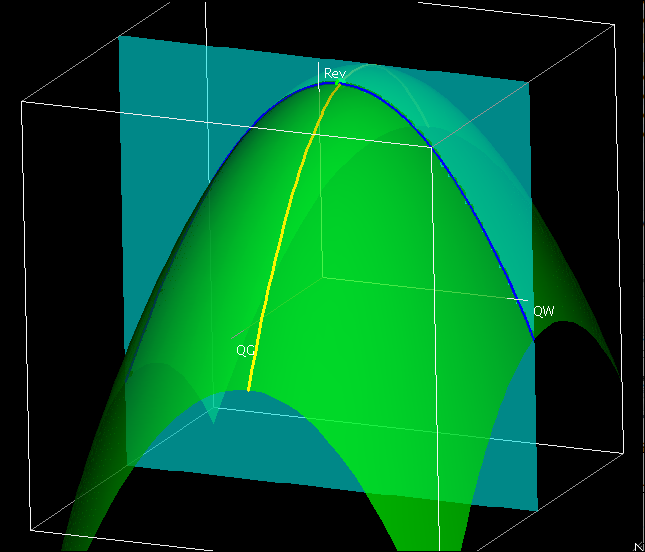 The wires are obtained by intersecting the graph of the function with a plane where QW or QG is held constant.