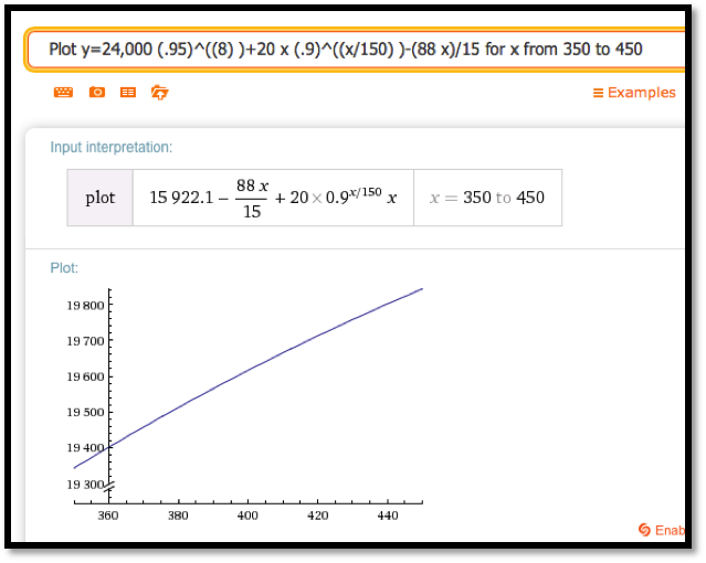 \frac{d}{d\QW} \revenue(300,\QW)=20-\frac{\QW}{20}\text{.}