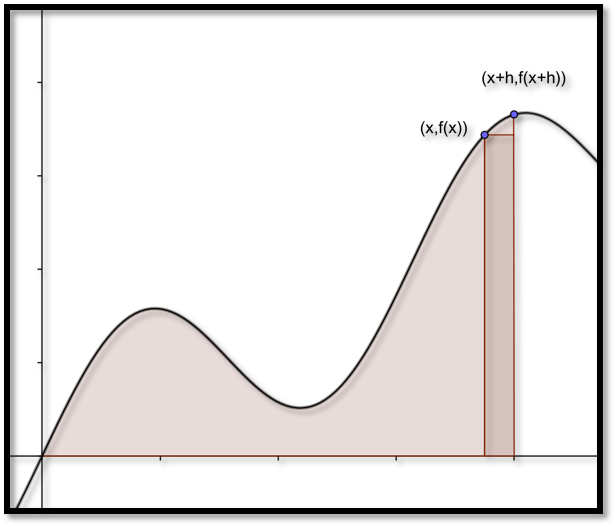 But if \(h\) is small, \(F(x+h)-F(x)\) is approximately the area of a rectangle of height \(f(x)\) and width \(h\text{,}\) so then \(F'(x) = f(x)\text{.}\) We then note that any two anti-derivatives of a function differ by a constant.
