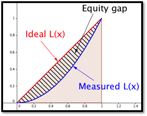 A question that arises in economics looks at the equity of income or wealth distribution in a country. In standard economic theories either too much or too little equity indicates a lack of opportunity and is a hindrance to growth. However, before being able to address the advantages or disadvantages of a level of inequity we need to be able to quantify the level of equity or inequity. The standard method is to use the Lorenz curve and the Gini index.